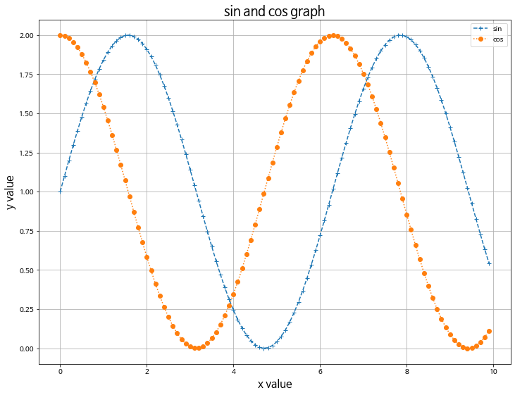 더 많은 marker와 linestyle 옵션 내용은 https://matplotlib.org/를 참고 바란다.