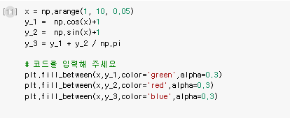 matplotlib에서 area plot을 그리고자 할 때는 fill_between 함수를 사용합니다.